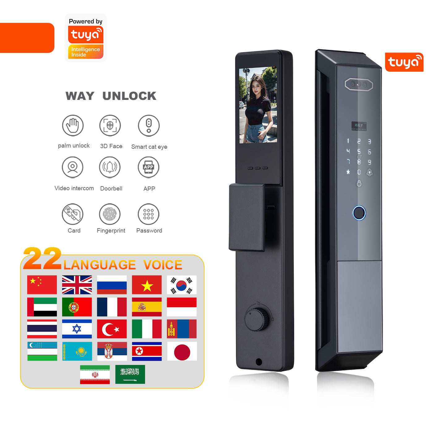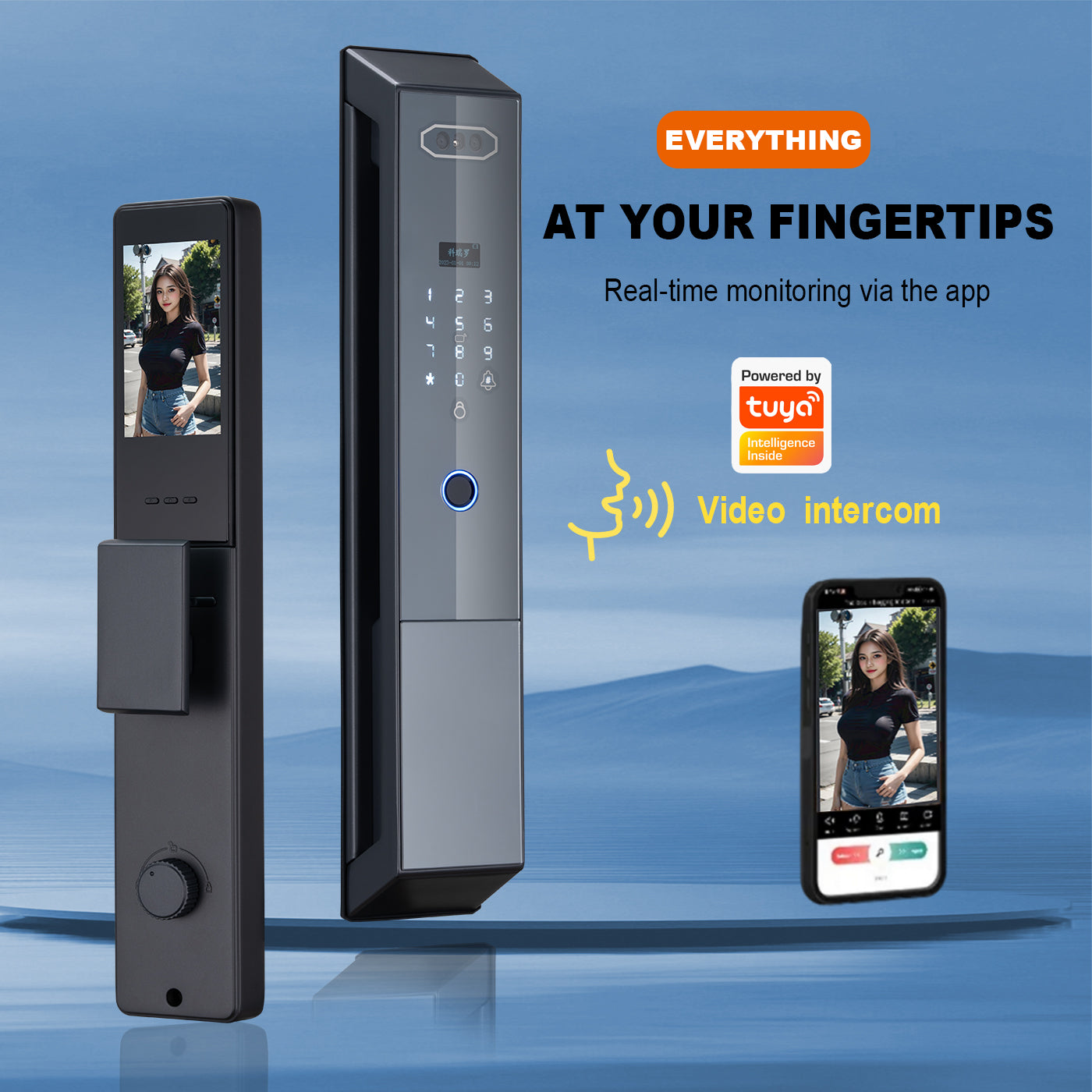Fully automatic anti-theft graffiti 3D facial intelligent lock WiFi facial recognition camera visual intercom fingerprint lock